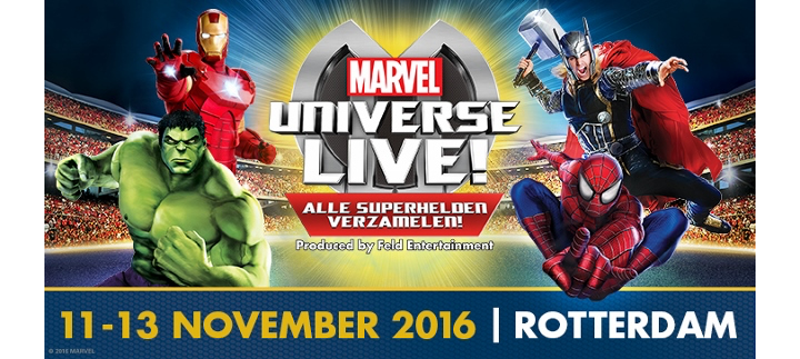 Voel de energie van geavanceerde special effects, vuurwerk, martial arts, motoren en diverse stunts in de lucht. Marvel Universe LIVE! wordt niet voor niets geroemd als de meest technisch geavanceerde live show ooit. Sluit je aan bij Marvel fans van alle leeftijden voor dit unieke spektakel. Het lot van het universum hangt ervan af!